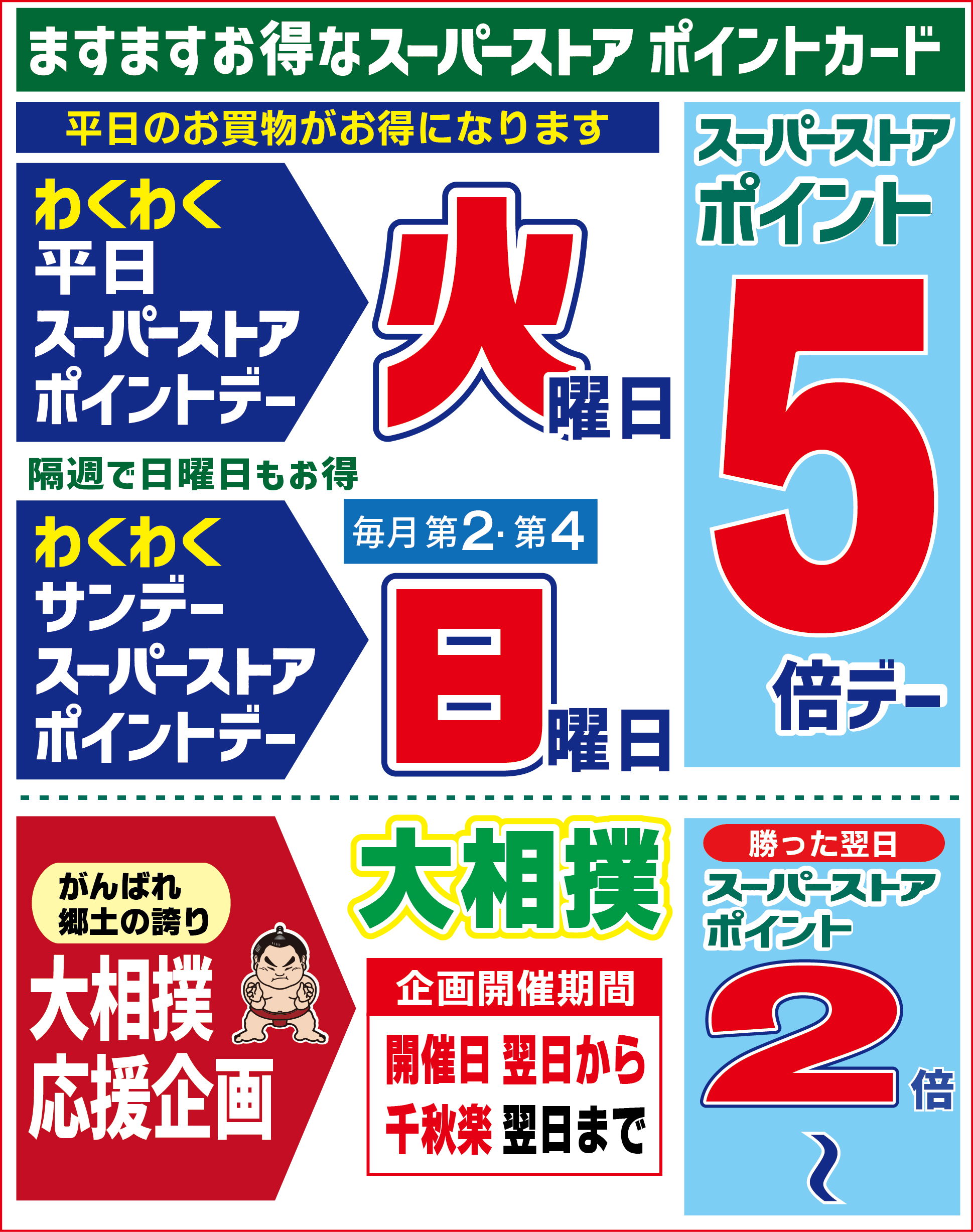 スーパーストアポイントカード 2020.06.022025.11.26 スーパーストアポイントカードとは 中里ショッピングタウンベル店、スーパーストア金木タウンセンター店、スーパーストア鶴田フッドリバーモール店各店でご利用いただけるポイント専用カードです。 年会費は無料でご使用いただけます。 ポイントをためると商品券をプレゼントいたします。 ポイントカードについてのお問い合わせはこちらの店舗まで 中里ショッピングタウンベル店:0173-69-1147 金木タウンセンター店:0173-54-1147 鶴田フッドリバーモール店:0173-23-1147